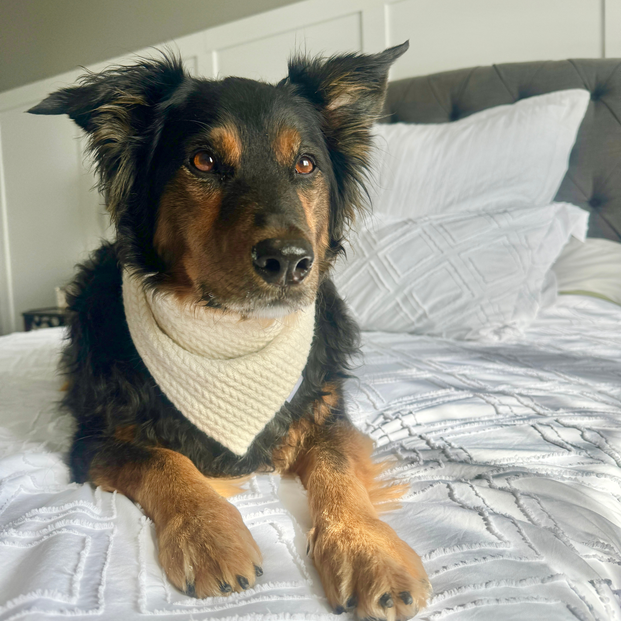 Cream Knit Dog Bandana