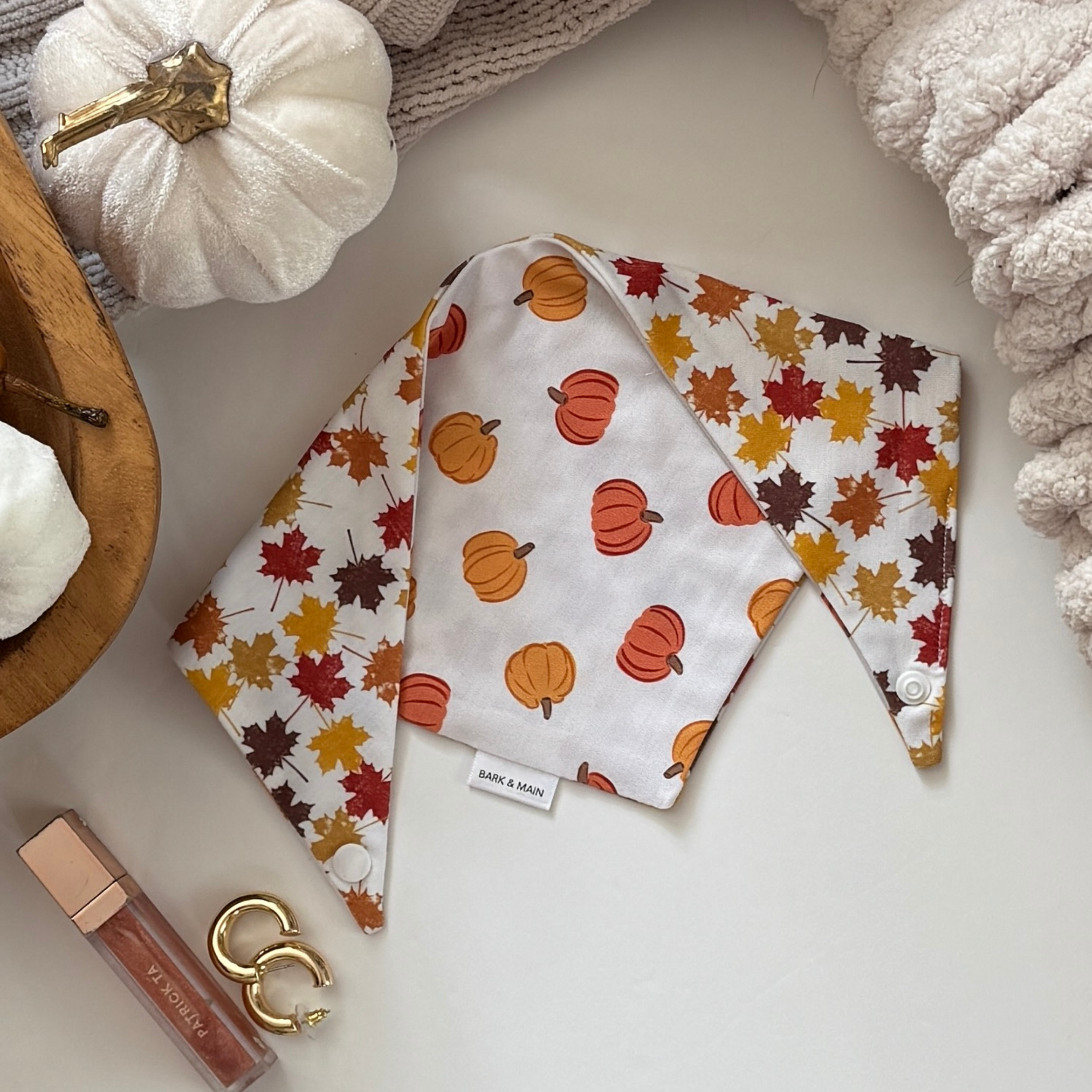 Pumpkin with Leaves Dog Bandana