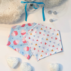 All Bandanas are designed to be folded over once before snapping. Please note that all measurements are taken from snap to snap. If you’re between sizes, we suggest sizing up.