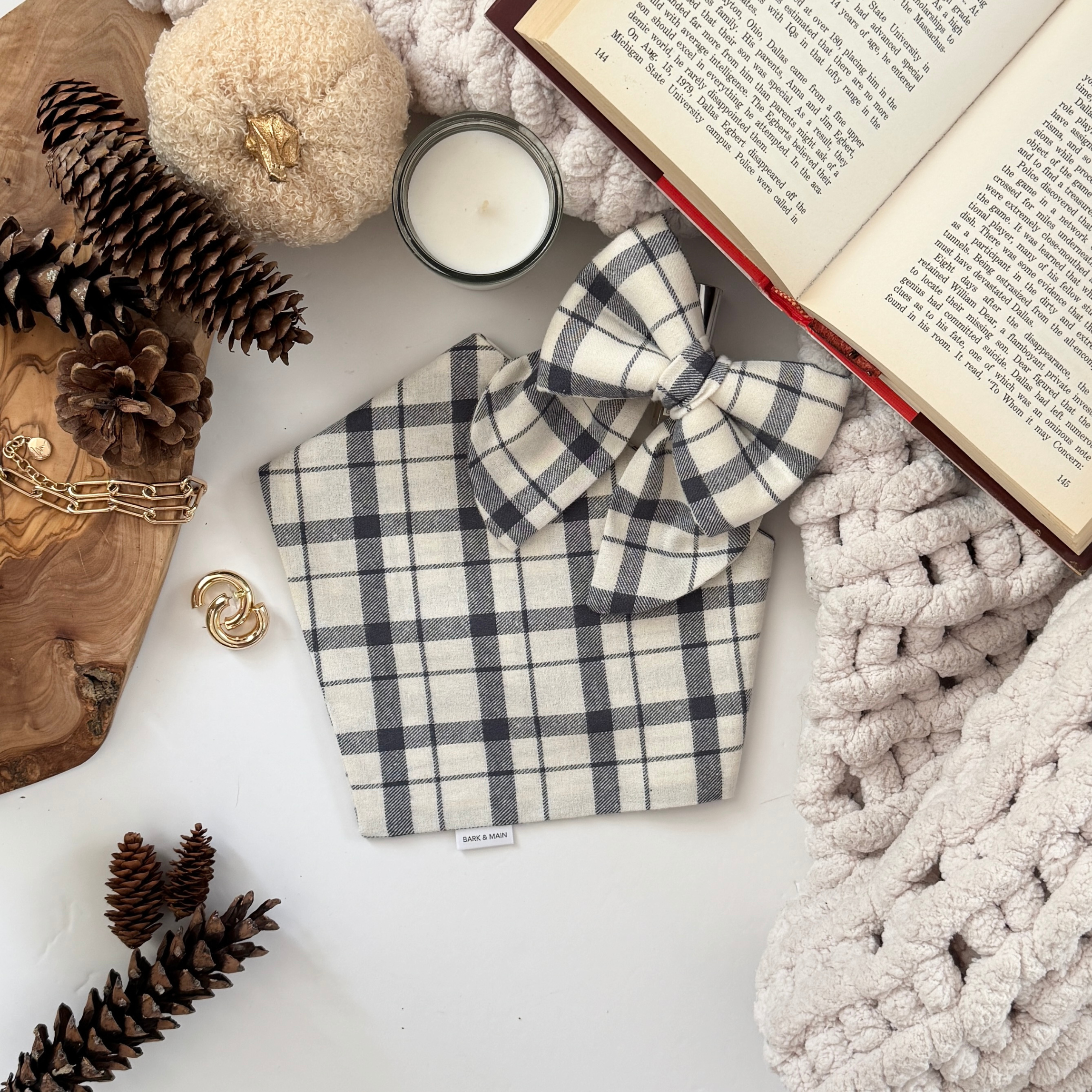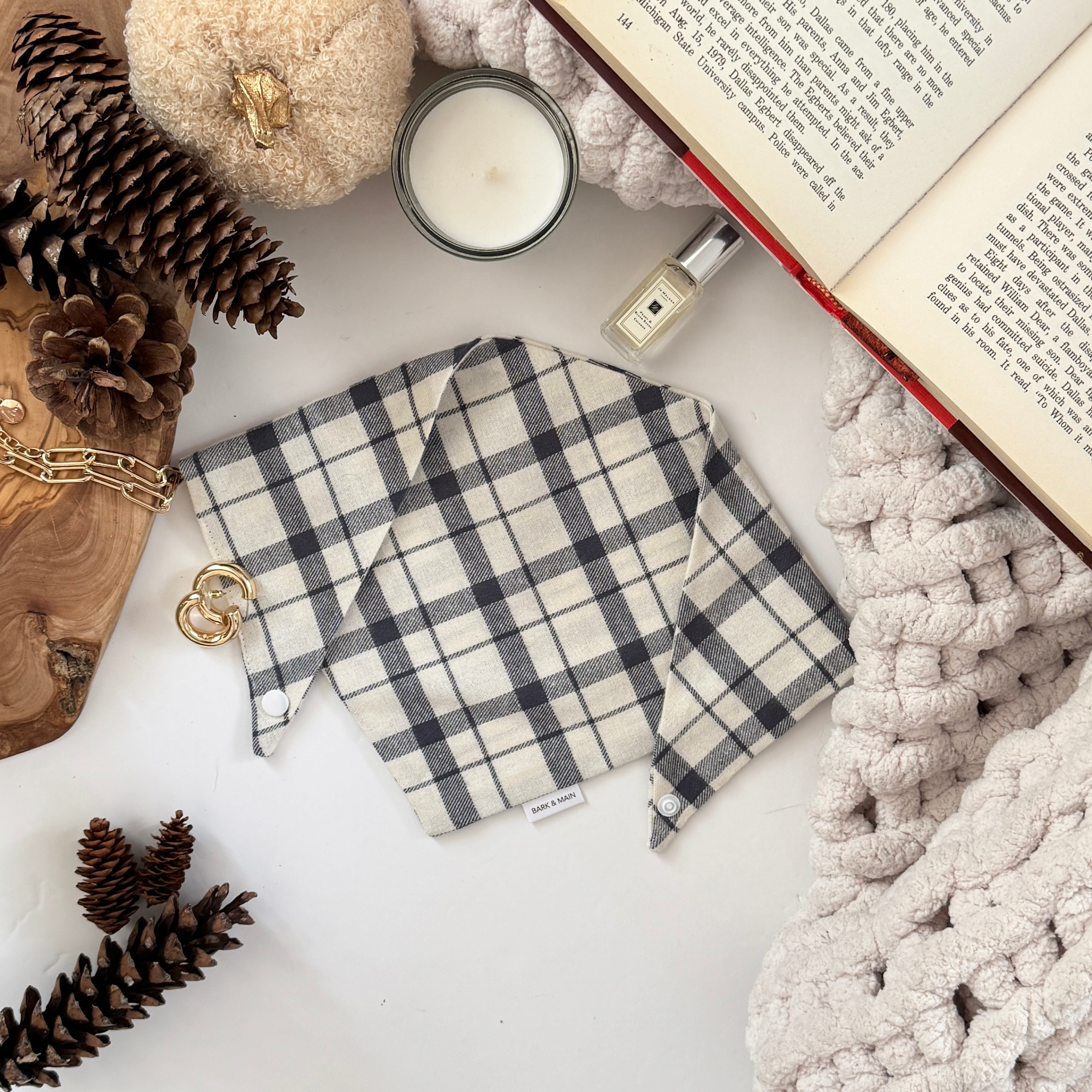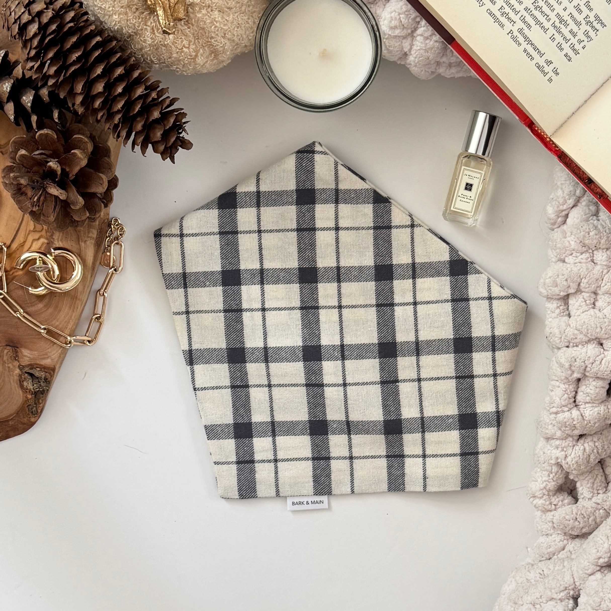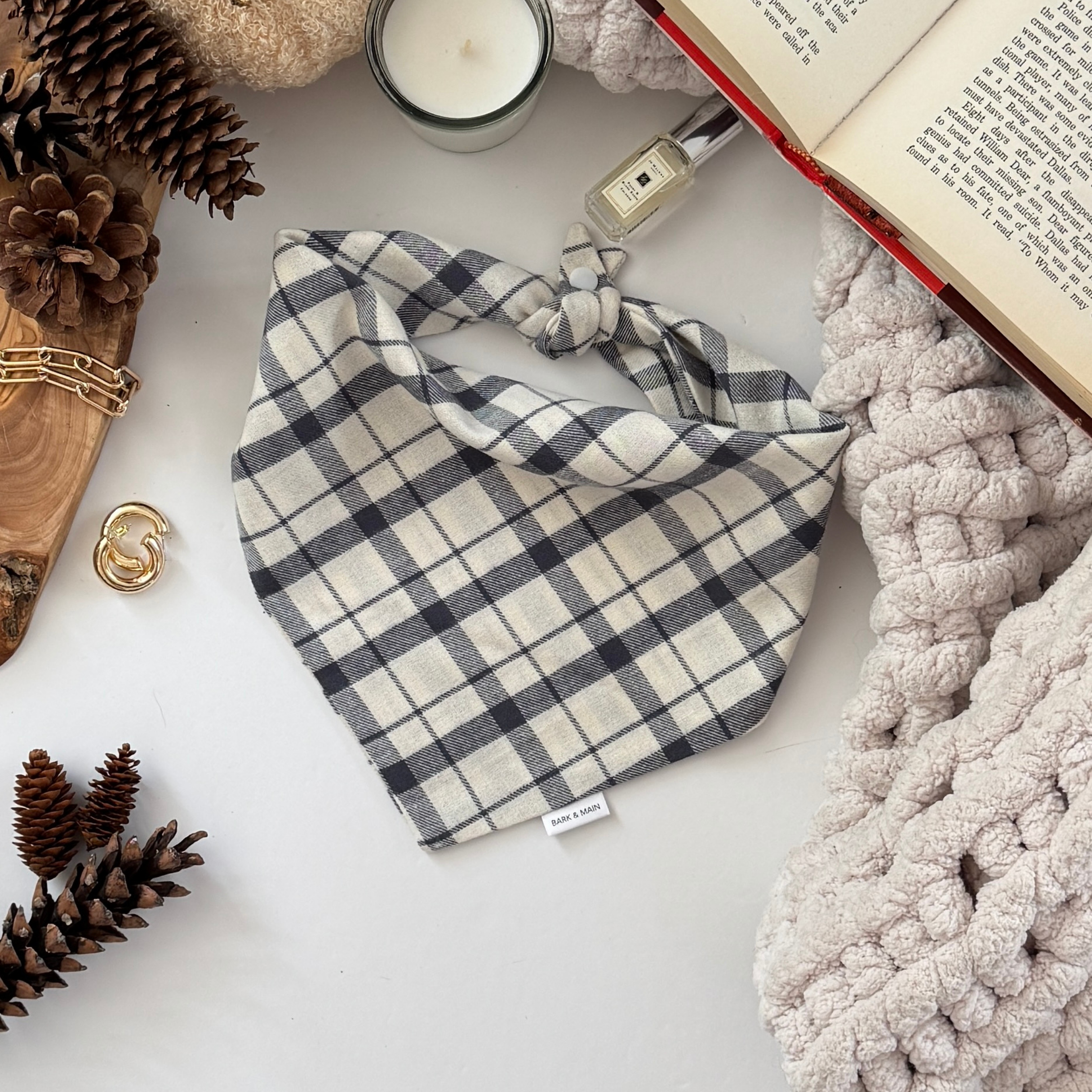 This soft blue plaid dog bandana is made from premium cotton. The classic plaid design makes it a must-have for fall