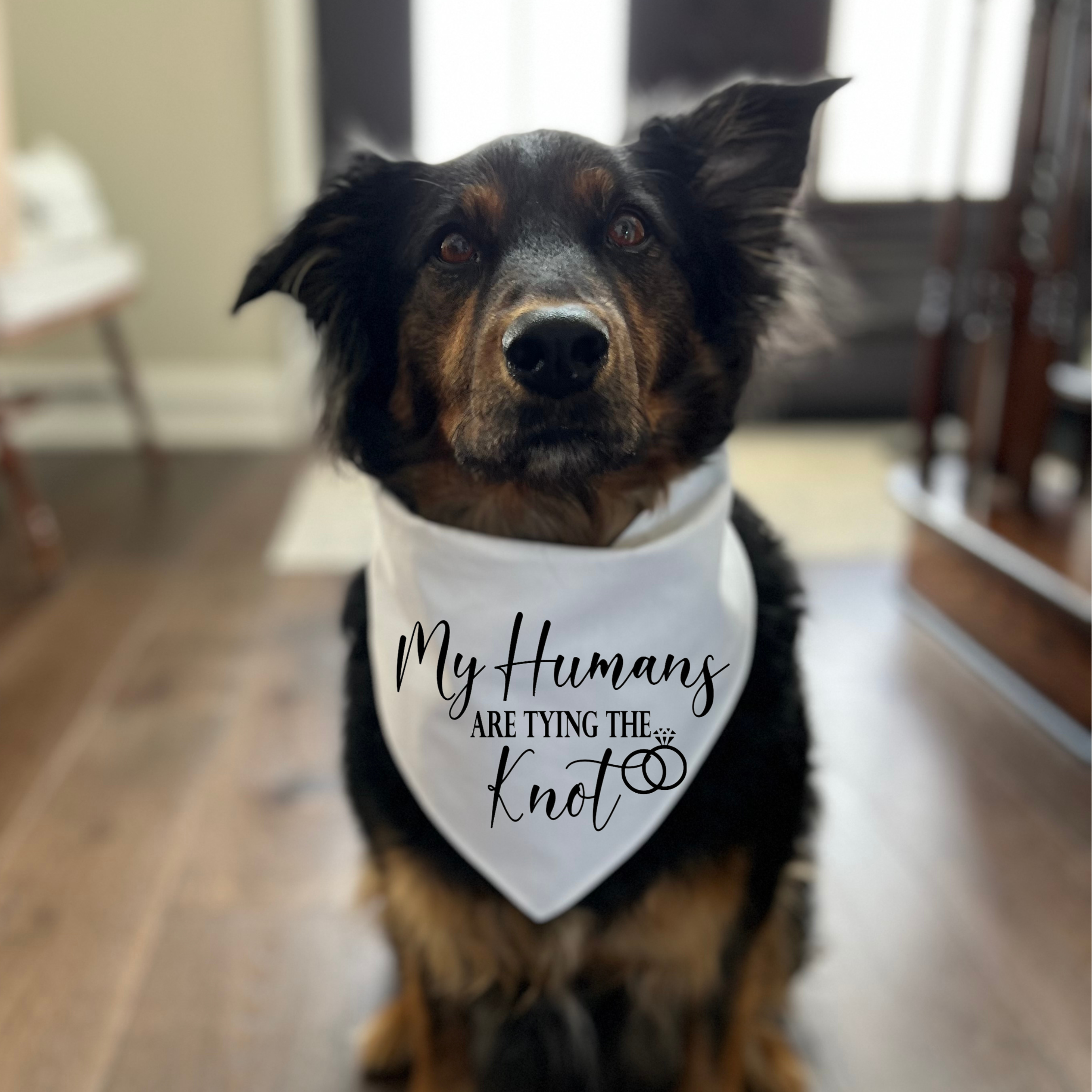 Get your furry friend ready for the big day with your "My Humans are Tying the Knot" dog or cat bandana! Available in a variety of vibrant colors and sizes, you can find the perfect fit for any breed. Let your four-legged companion join in on the celebration.