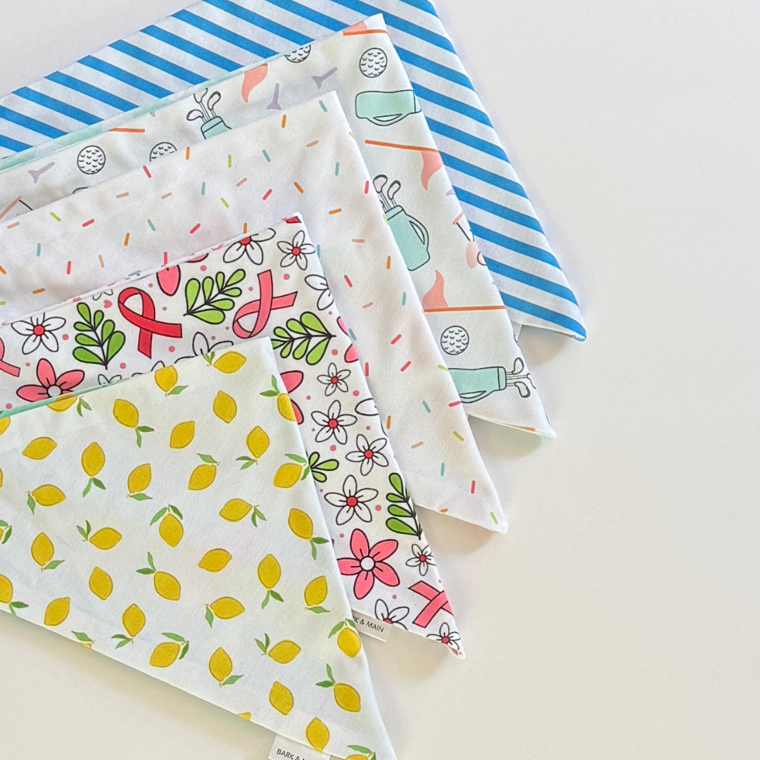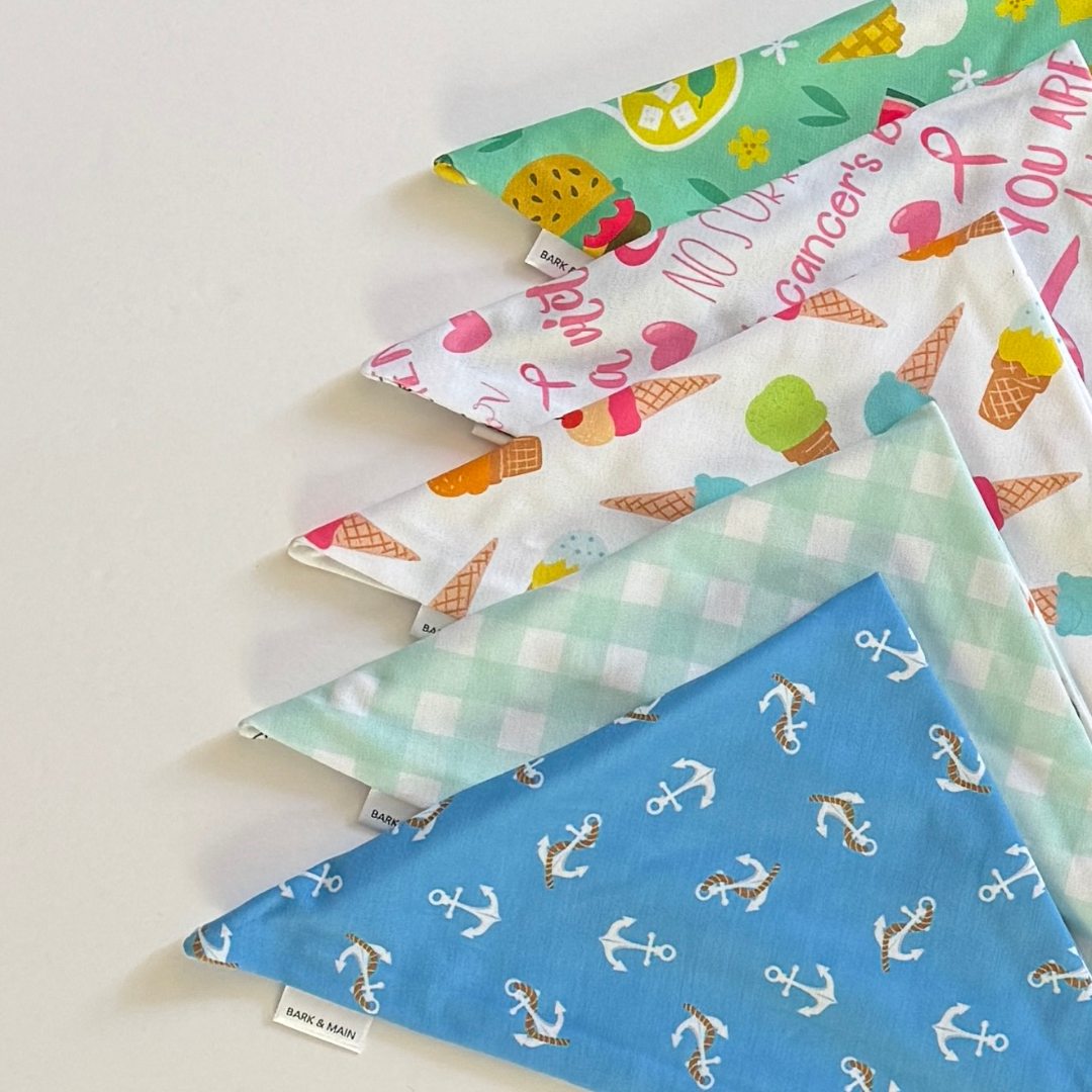 All Bandanas are designed to be folded over once before snapping. Please note that all measurements are taken from snap to snap. If you’re between sizes, we suggest sizing up.
