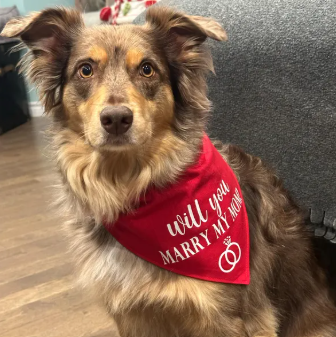 Propose with the help of your dog or cat “WILL YOU MARRY MY MOM?” dog or cat bandana